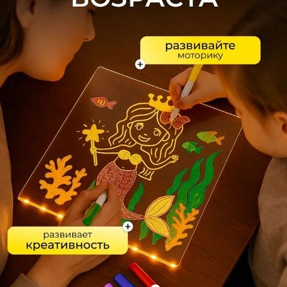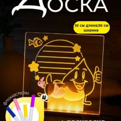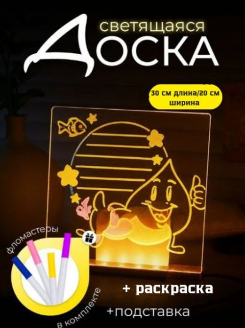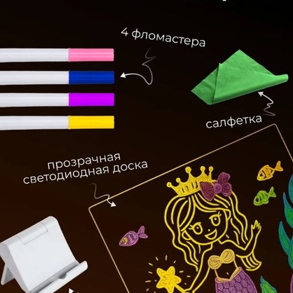 Доска для рисования с подсветкой (подставка, маркеры, раскраска, салфетки)