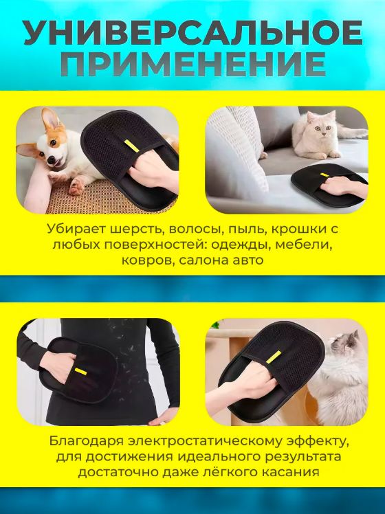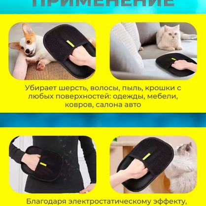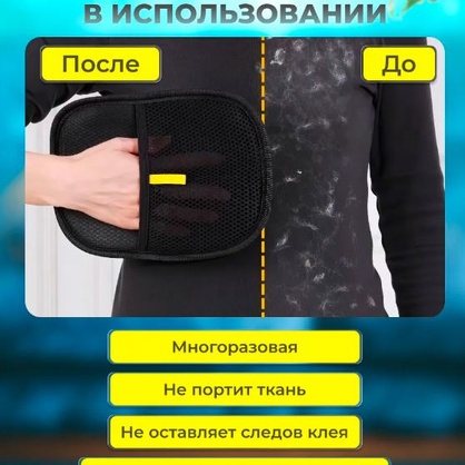 Перчатка для сбора шерсти с одежды и мебели